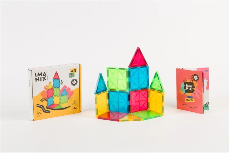 Prepara’t per a desafiar la gravetat i explorar l’emoció de construir i desarmar amb les figures magnètiques i blocs de construcció IMANIX de 12 peces!