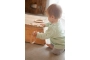 Els tints són amb base aigua i no tòxics que compleixen la normativa europea de la seguretat de la Joguina EN/71-3:2014 + A1:2014 / 2013. Treballar amb tints i no amb pintures acríliques permet seguir tenint contacte amb la fusta que és noble i amable. El dibuix de la veta, els seus matisos i tactes, les seves característiques pròpies. El tint no salta de la fusta quan aquesta cau a terra o quan el temps passa perquè penetra molt endins de la peça. Alguna vegada pot ocórrer que per un excés de pigments alguna peça perdi una mica de color en entrar en contacte amb la saliva, no hi ha problema, són absolutament segures i no tòxiques.