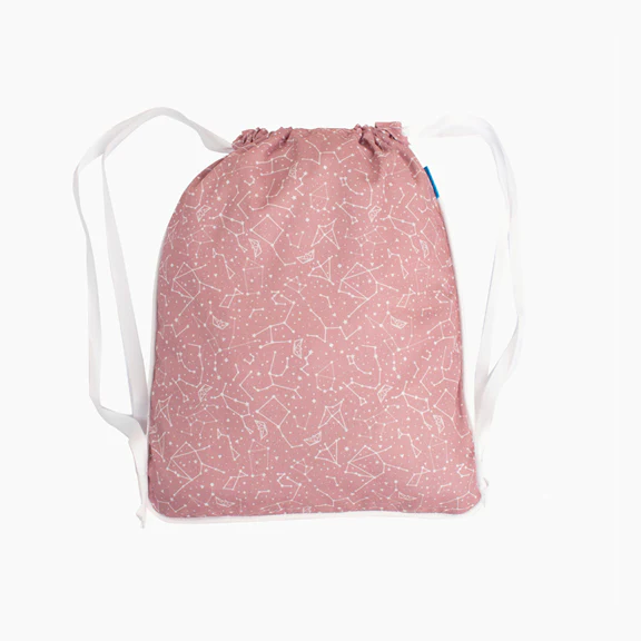 Motxilla Infantil plena de dolçor amb el nostre estampat constel·lació color malva. És molt pràctica i lleugera per a portar les coses del teu petit, per a anar d’excursió, per a viatjar… Confeccionada amb folre interior i tancament de cordó.