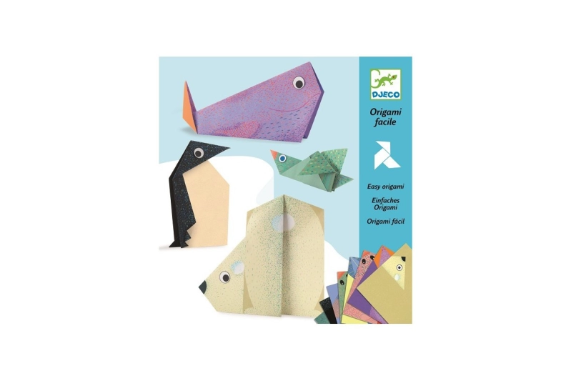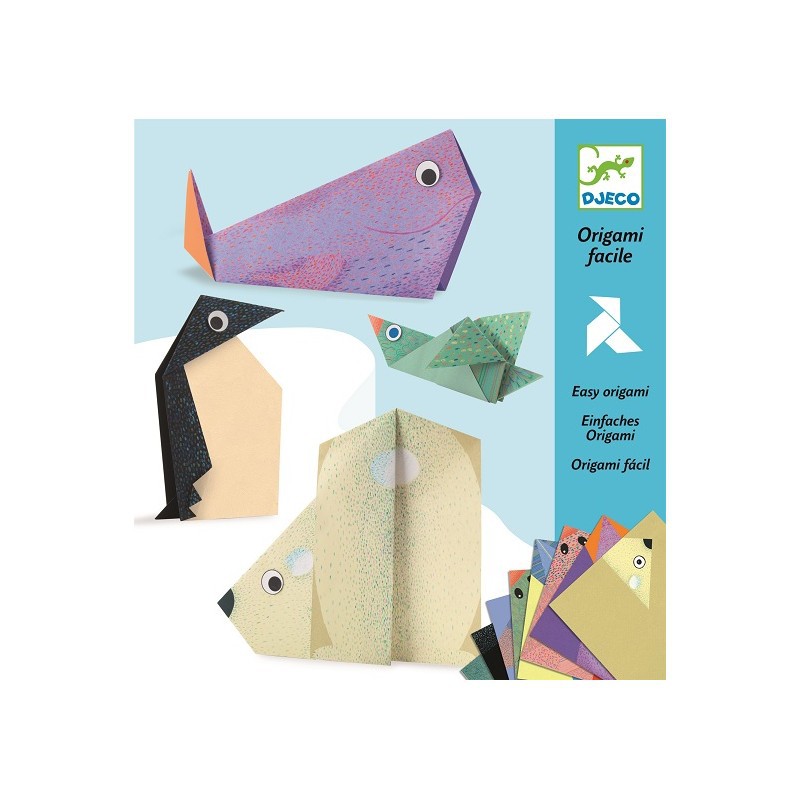 Origami és l’art d’origen japonès consistent en el plegat del paper per obtenir figures de formes variades. No s’utilitzen tisores ni cola o grapes, tan sols el paper i les mans. El conjunt és una gran introducció a aquest preciós art; els papers de colors estan dissenyats perquè sigui fàcil de veure on han d’anar els plecs. Només has de triar el teu paper favorit i fer l’animal polar d’origami.