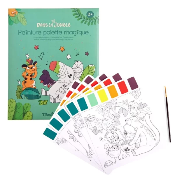 Descobreix la màgia amb els animals mes adorables de la col·lecció Dans la jungle amb la increïble paleta de pintura de Moulin Roty! Cada dibuix porta una paleta de pintures amb aquarel·la per a acolorir el dibuix. Una vegada finalitzat, la paleta es retira i l’obra d’art es conserva!. Perfecte per a portar a qualsevol lloc i transformar els moments d’inactivitat en moments creatius.