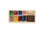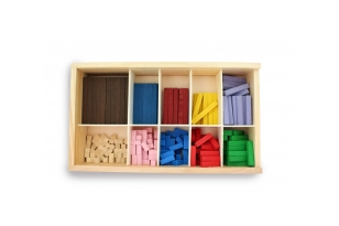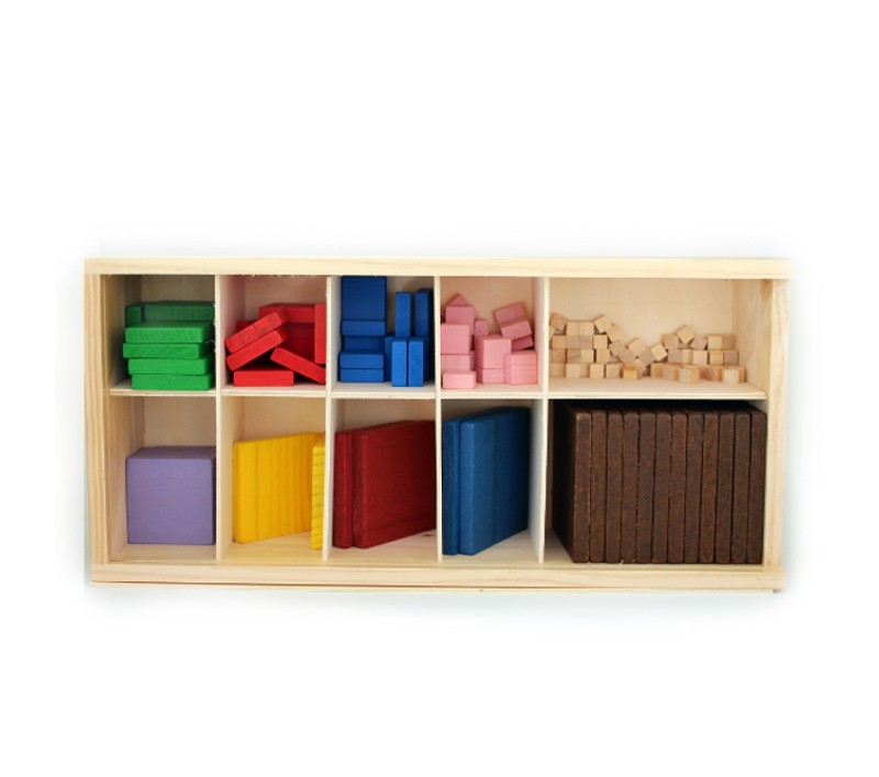 La caixa conté: 144 quadrats de fusta, pintades amb tint ecològic amb els mateixos colors que els quadrats i els reglets numèrics. La caixa de quadrats conté: 60 quadrats d’1 cm. d’aresta 25 quadrats de 2 cm. 15 quadrats de 3 cm. 10 quadrats de 4 cm. 10 quadrats de 5 cm. 6 quadrats de 6 cm. 2 quadrats de 7 cm. 2 quadrats de 8 cm. 2 quadrats de 9 cm. 12 quadrats de 10 cm. Tots els quadrats fan 1 cm de gruix