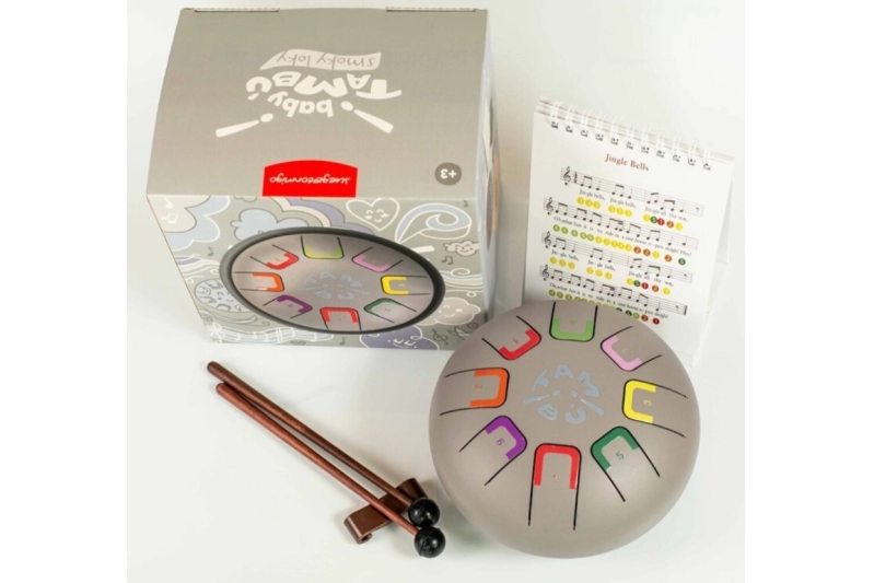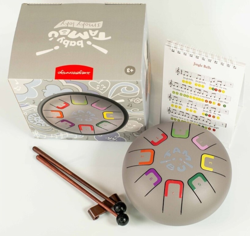 Especialmente diseñado para niños y niñas es compacto y tiene 8 notas diferenciadas por números y colores que emiten sonidos armónicos relajantes que se pueden tocar con baquetas, con las púas de dedos o con las manos y de cada manera se producirá una intensidad de sonido distinta.