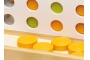 - Objetivo del juego: Consiste a poner 4 fichas en línea vertical, horizontal o diagonal. Las fichas naranja tienen una senefa grabada, mientras que las verdes son lisas, facilitando la jugabilidad para personas con deficiencia visual o ciegas.