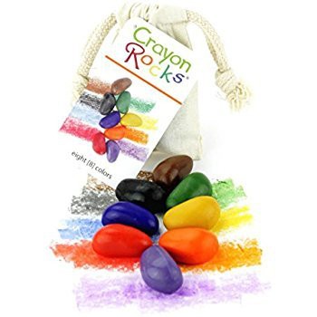 Los Crayon Rocks son lápices de colores a base de cera de soja natural cultivada en EE.UU. y coloreadas con pigmentos minerales naturales. Los colores son brillantes y se pueden superponer para hacer dibujos maravillosos. No tóxicos y una mejor opción a los lápices de cera tradicionales fabricados a partir de derivados del petróleo. No se parten y han sido diseñados para que los niños, sin darse cuenta, los cojan utilizando los dedos de forma correcta, fortaleciendo los músculos de agarre y así preparar los dedos y las manos para la escritura a mano. Su forma permite tanto colorear de forma fina como en trazos grandes y anchos para crear imágenes ricas en color. No manchan la ropa ni las manos y son aptos para diestros y para zurdos. Utilizado por los terapeutas ocupacionales para desarrollar la motricidad fina.