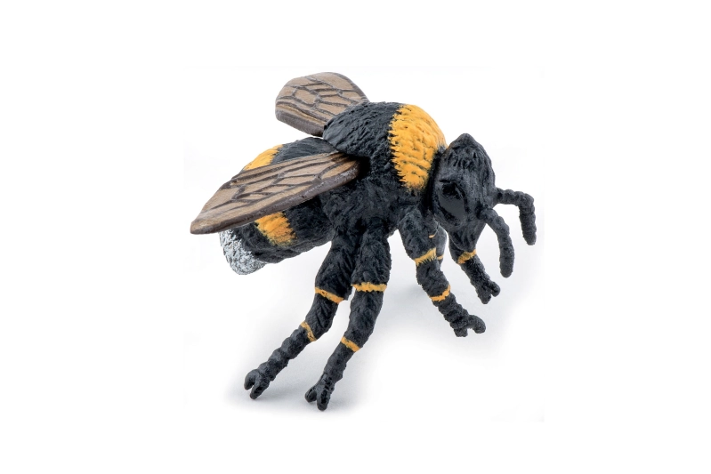 Figurita de un abejorro (género Bombus), representando a una obrera. Este insecto de la familia de las abejas es también un eficaz polinizador de plantas con flor. La única que sobrevive al invierno es la reina, que en cuanto sale del letargo comienza a crear un nuevo nido.