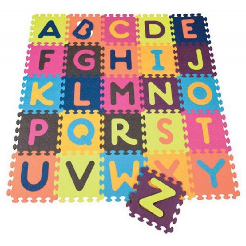 Conjunto de 26 rompecabezas de espuma de diferentes colores y con 26 letras del abecedario