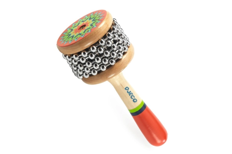 Una cabassa muy bien ilustrada sobre el tema de los nativos americanos. Cuando el niño hace girar las cuentas en la parte metálica con muescas o agita el instrumento, el sonido que emite recuerda al de una serpiente de cascabel. Un instrumento de percusión ideal para pequeños músicos a partir de 5 años.