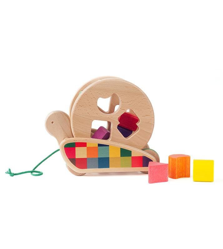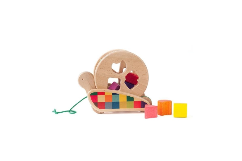 Estira la cuerda y la barriga del caracol comenzará a girar. Quitar la barriga del caracol y clasifica y encaja las 6 figuras geométricas de madera. Todas las figuras son diferente y el niño tendrá que encontrar el agujero correcto para poder colocar las piezas en la barriga del caracol. El carrete de clasificación Bajo estimula los sentidos y las habilidades motoras, una gran idea de juego de Bajo que los niños podrán disfrutar durante mucho tiempo.
