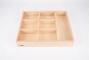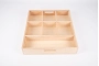 Bandeja de madera de haya con muy buenos acabados dividida en 7 secciones que se pueden usar para clasificar y exhibir. Ideal para organizar nuestros tesoros de madera por color o forma. O los elementos de los mini mundos, los tesoros recogidos en la naturaleza….