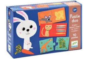 Baserriko animaliak puzzlea pieza erakargarriekin, animalien gorputzetan oihal-txatalak dituztenak. Ukimenaren eta sentsazioen bidez, haurrek baserriko animaliak eta haien idazkera ezagutzen dituzte, ikaskuntza sentsoriala eta gaitasun kognitiboen garapena sustatuz