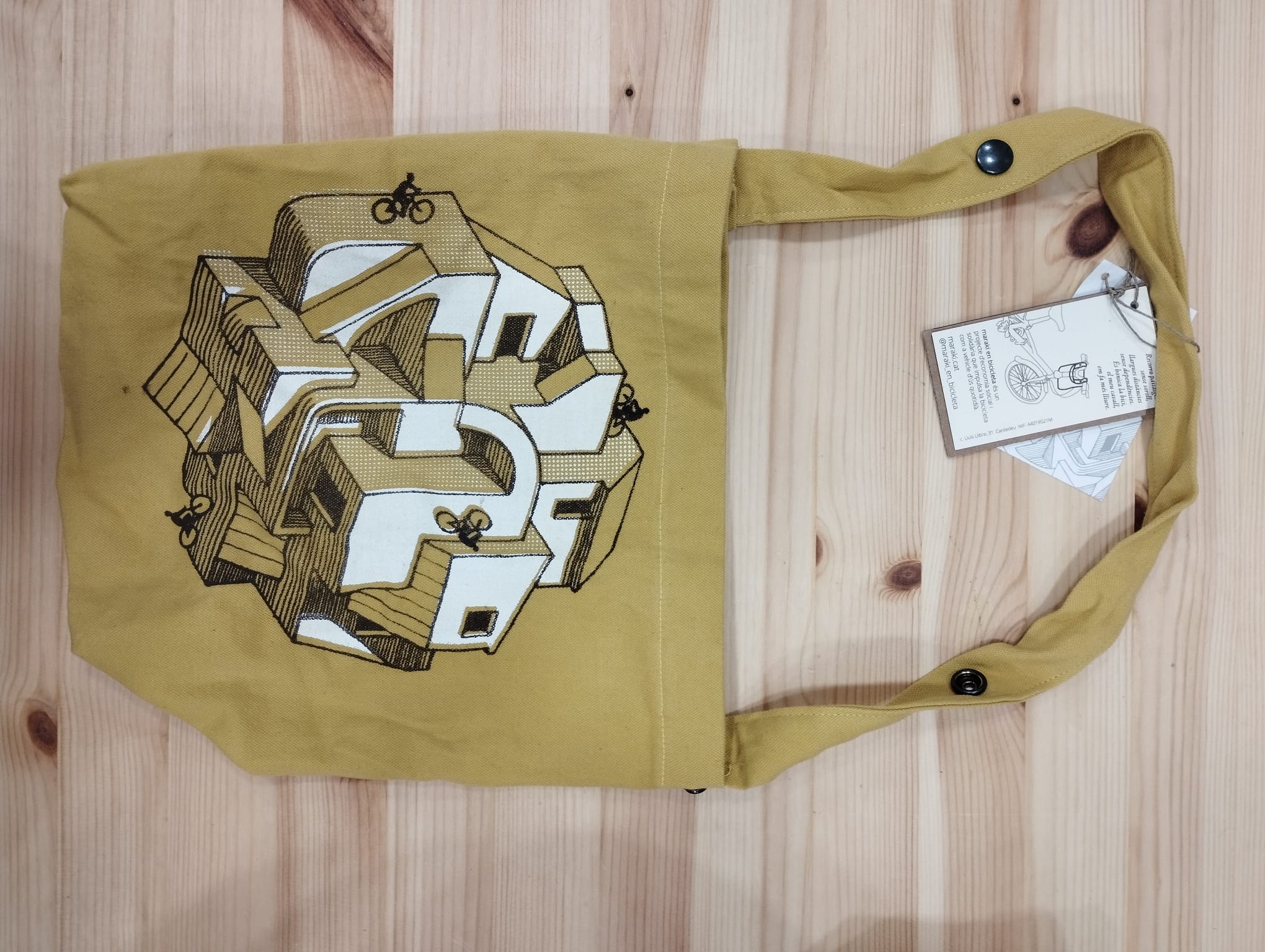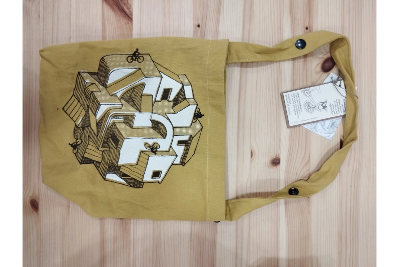 Una bolsa de tela para colgar en el manillar y para colgar en el hombro