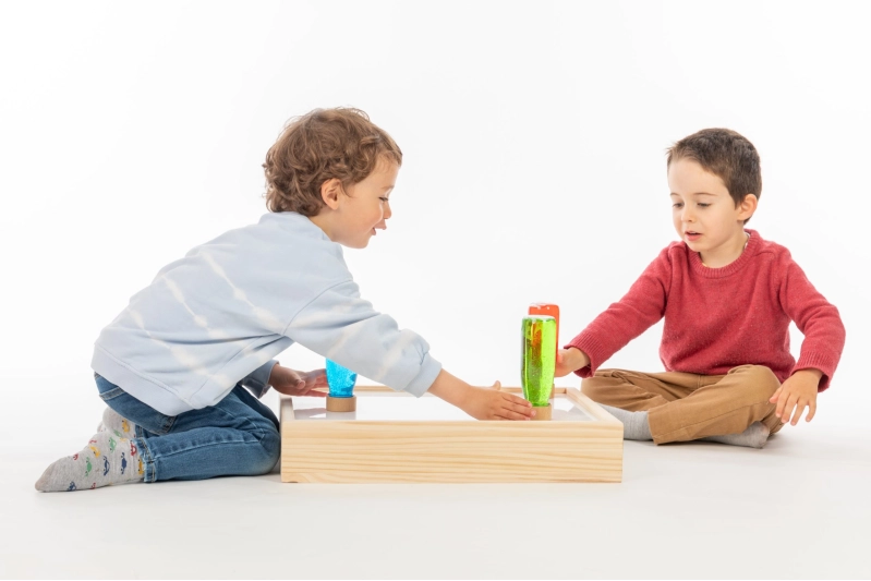 Desarrollo sensorial: La caja de luz ofrece una experiencia sensorial única al combinar la estimulación visual con la posibilidad de explorar diferentes texturas, formas y colores. Esto ayuda a los niños a desarrollar y afinar sus habilidades sensoriales, como el tacto y la percepción espacial.