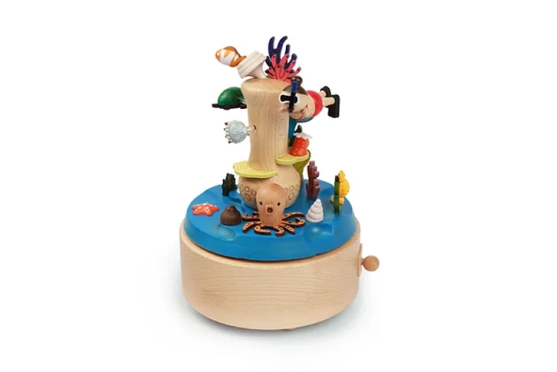 Se da rosca manualmente y tocan durante un centenar de segundos el aire de grandes compositores clásicos. Estas melodías mezcladas en la decoración en movimiento de la caja de música en fan un objeto único que ofrece una emoción simple y universal.