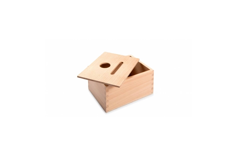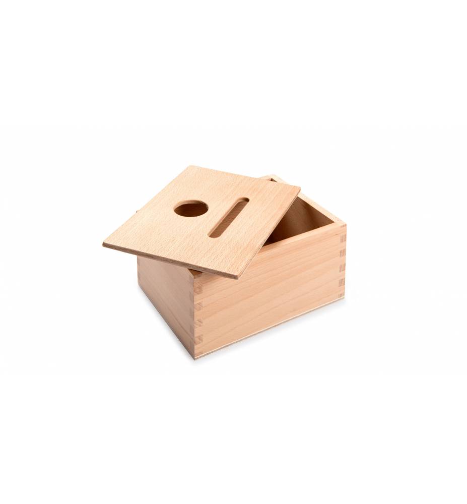 Una caja mágica para encajar piezas, coleccionar, atesorar o intercambiar. Permite a los bebés y niños pequeños explorar por sí mismos a través de todas sus fases de aprendizaje. La caja está pensada para formar el conocimiento en torno al principio de permanencia, pero es un gran complemento para el juego simbólico para encajar, clasificar, combinar colores y… ¡un sinfín de posibilidades más por descubrir!