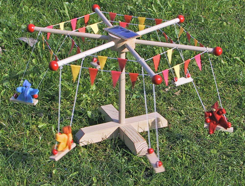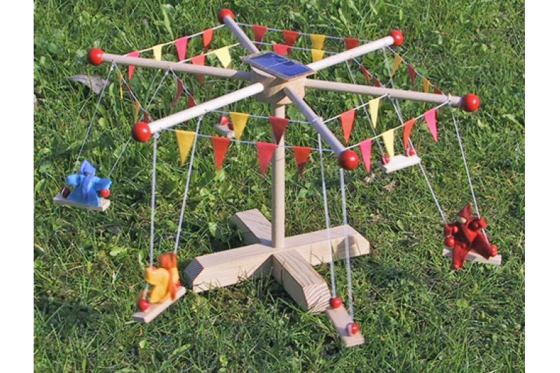 La luz del sol alimenta el Sun Carousel, nuestro kit con 3 muñecos. Una célula solar suministra electricidad a un pequeño motor. Al sol o a la luz de una bombilla o de un foco halógeno, el carrusel comienza a girar.