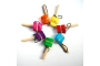 Los juguetes de colores son de haya o fresno, están teñidas con tintes no tóxicos y tratados de forma natural con cera de abeja. Los juguetes sin colores destacan por la belleza natural de su veteado, como la de los árboles frutales.