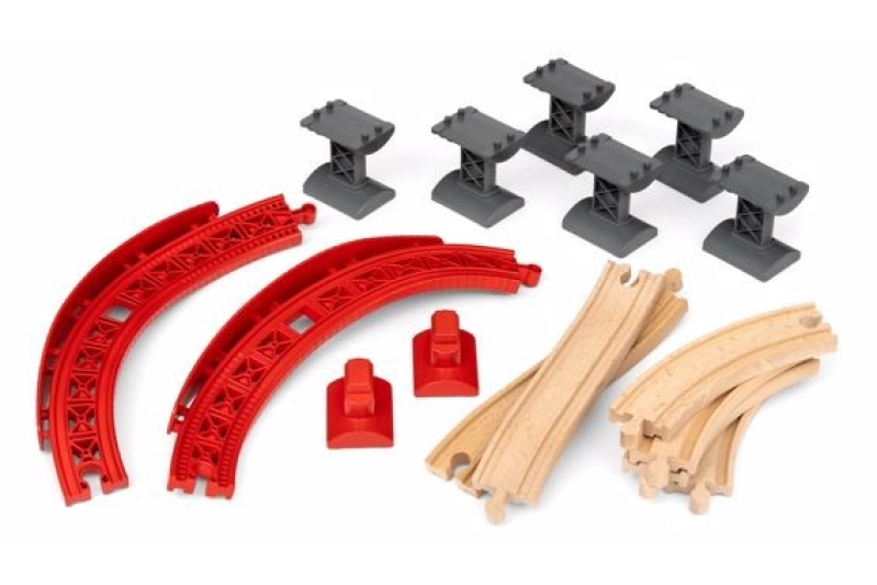 Estas serpenteantes vías en pendiente aportan velocidad, altura y un toque colorido a tu set ferroviario. Utiliza este set de vías de manera independiente o añádelo a cualquier combinación BRIO World para aportar altura, velocidad y más diversión.