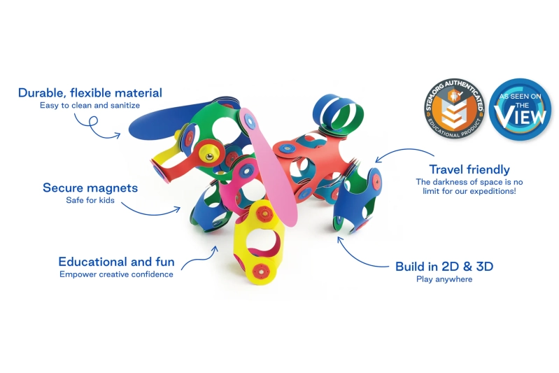 Clixo es un juguete con millones de posibilidades. Su ingenioso diseño acompaña habilidades científicas, espaciales y táctiles convirtiendo formas planas 2D en objetos 3D. Las piezas también fomentan la experimentación y los permiten convertir conceptos abstractos e ideas creativas en realidad tangible.