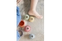 Se puede complementar el juego heurístico con el llenar y el vaciar, los traspasos y el cargar, el esconder y el descubrir… Estos cuencos de diferentes medidas también permiten crear mundos de torres, colores, construcciones, esconder tesoros como cajitas o incluso hacer rodar uno dentro del otro. Estas 24 piezas permiten una amplia variedad de juego según el momento y la imaginación de cada momento.