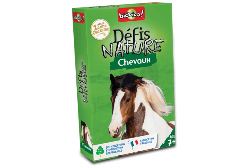 Desafíos de la Naturaleza: Caballos es un emocionante juego de cartas diseñado para 2 a 6 jugadores y adecuado para niñas y niños a partir de 7 años. Fabricado en Francia, este juego permite a los participantes descubrir las diferentes razas de caballos y apostar por sus características más destacadas.
