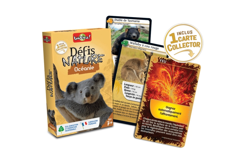 - Contenido: Incluye 36 cartas que presentan diversas especies de animales de Oceanía, cada una con características como peso, hábitat y estado de conservación.