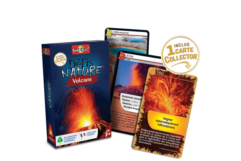 Desafíos de la Naturaleza: Volcanes es un emocionante juego de cartas diseñado para 2 a 6 jugadores y adecuado para niños y niñas a partir de 7 años. Fabricado en Francia, este juego permite a los jugadores descubrir los volcanes más impresionantes del mundo y apostar por sus características más destacadas.