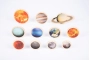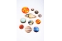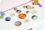 Discos de madera, imprimido en color con bonitas ilustraciones claras y realistas del sistema solar. El Sol, Mercurio, Venus, Tierra, nuestra luna, Marte, Júpiter, Saturno, Urano, Neptuno y Plutón.