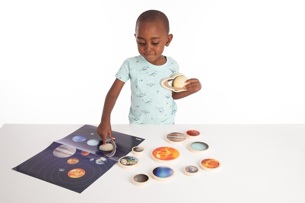 Los niños disfrutarán jugando mientras desarrollan varios aspectos del aprendizaje, incluyendo el lenguaje descriptivo, la exploración del lenguaje matemático, el juego colaborativo, las habilidades motoras, el juego imaginativo y la comprensión del mundo. Incluye una guía en 8 lenguas y un póster A3 del sistema solar.