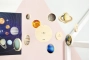 Tienen un agujero para poder pasar un hilo y colgarlos como un sistema solar móvil.