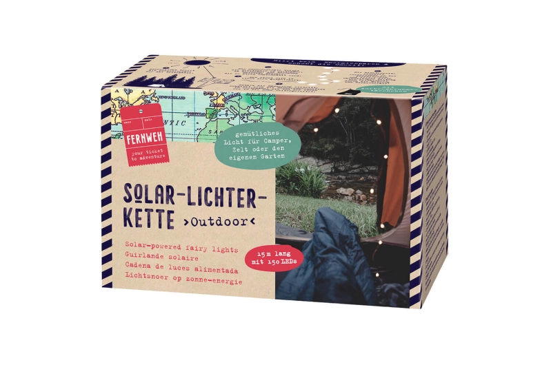 Guirnalda hecha de alambre de cobre. incluye panel solar, batería integrada y pincho para clavar en el suelo. Ideal para exteriores y para llevarla con tus aventuras.