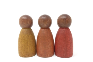 Los tintes son con base agua y no tóxicos que cumplen la normativa europea de la seguridad del Juguete EN / 71-3: 2014 + A1: 2014 / 2013. Trabajar con tintes y no con pinturas acrílicas permite seguir teniendo contacto con la madera que es noble y amable. El dibujo de la veta, sus matices y tactos, sus características propias. El tinte no salta de la madera cuando ésta cae al suelo o cuando el tiempo pasa para que penetra muy adentro de la pieza. Alguna vez puede ocurrir que por un exceso de pigmentos alguna pieza pierda un poco de color al entrar en contacto con la saliva, no hay problema, son absolutamente seguras y no tóxicas.