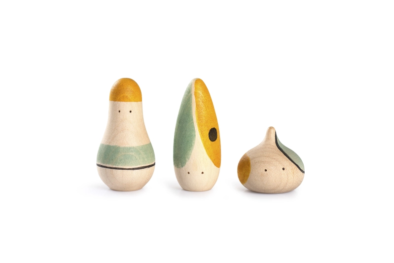 Fabricados a Figueres con madera de bosques controlados, cada pieza está pintada a mano con tintes vegetales.