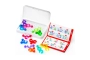 Incluye: 12 piezas del rompecabezas, 1 tablero compacto con tapa, cuaderno con 120 retos y soluciones y las instrucciones de juego.