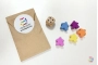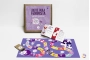 Dentro de la caja encontrarás el tablero de juego, junto con 5 fichas de madera y un dado, y también un librito de instrucciones.