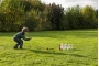 Coloca los bolos en la posición inicial y tirando el balón desde una distancia pactada, trata de que caigan los máximos bolos posibles.