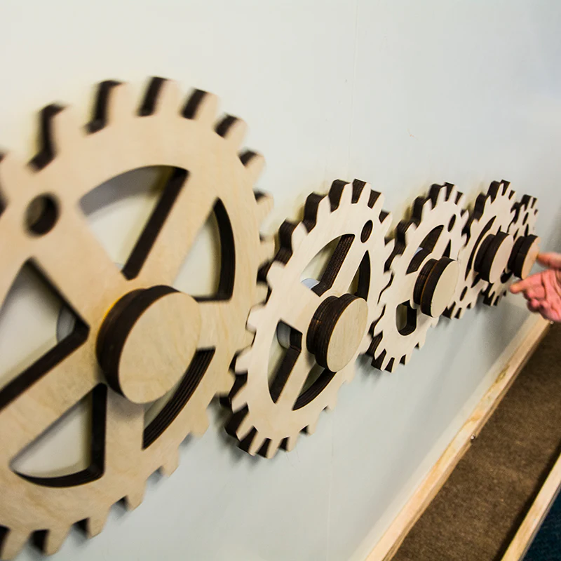 El conjunto de Engranajes de madera para pared magnética ofrece infinitas oportunidades para que los niños exploren el movimiento, los sistemas y la mecánica de los engranajes.