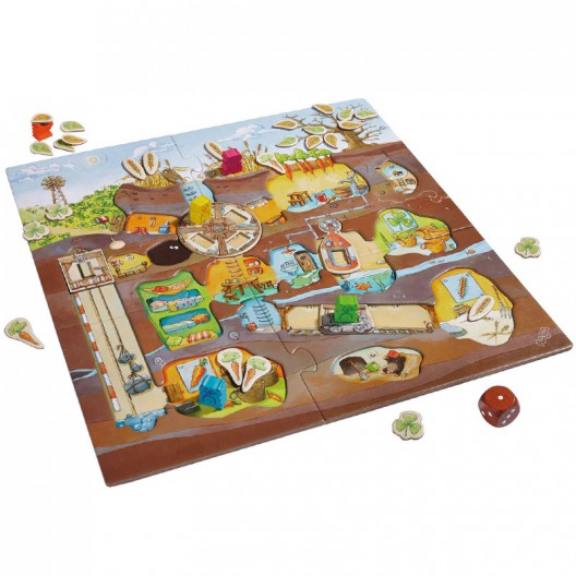 - 12 fichas de comida (4 zanahorias, 4 hojas de trébol, 4 espigas de cereal)