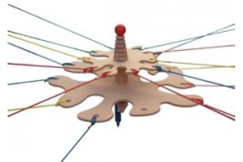 Se coloca cualquier objeto para dibujar y que se adapte al lápiz cooperativo. Se fija con Velcro y los jugadores toman el control de una o dos cuerdas. Las cuerdas se deben tensar, poner el lápiz en posición horizontal y ya se puede escribir o dibujar para el objetivo propuesto. Mediante la sincronización de sus movimientos, se puede: seguir un laberinto, conectar los puntos para revelar un rompecabezas, dibujar un patrón, adivinar un dibujo escondido, seguir un nombre, etc. La diversidad de los retos es muy grande.