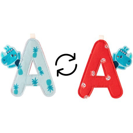 Descubrid la letra A de Lilliputiens, una colorida letra del alfabeto en tela para escribir el nombre de vuestro bebé o un mensaje personalizado.