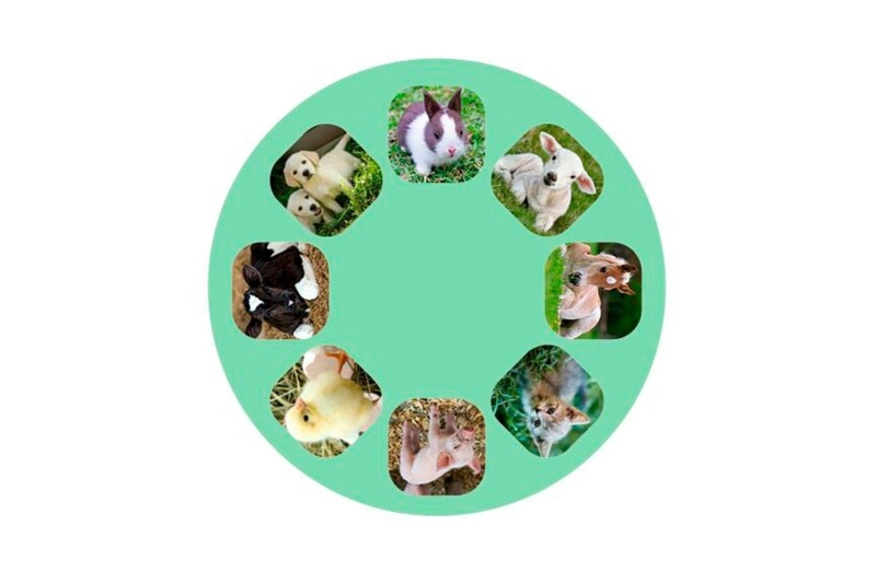 Tres discos giratorios con 24 imágenes en total y a todo color de bebés animales.