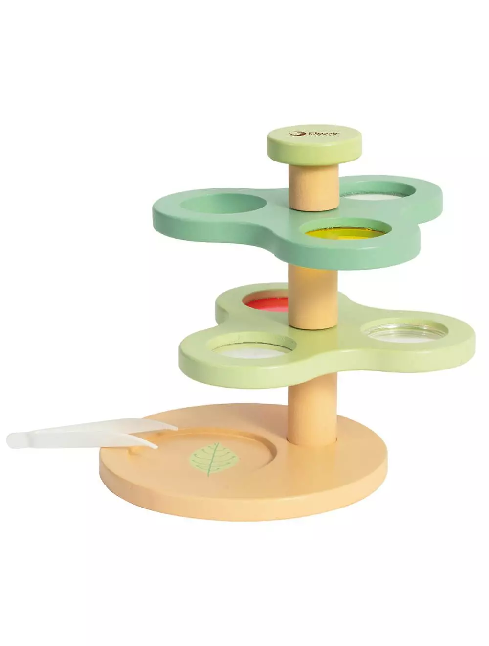 Salir a observar la naturaleza es más divertido gracias a este conjunto de lupas y prismas de exploración. Su base permite colocar diferentes elementos naturales y aprender sobre las hojas, palos, la tierra, insectos… haciendo girar los dos conjuntos de lupa y prismas para observarlos detenidamente. Incluye lentes de colores (rojo y amarillo), prismas, espejo cóncavo y una lupa. También se pueden extraer de la base y usar donde quieras.
