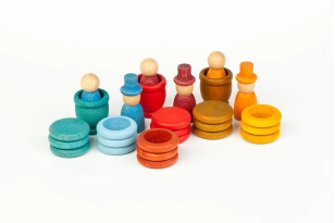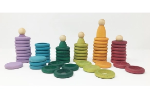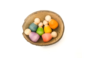 Los tintes son con base agua y no tóxicos que cumplen la normativa europea de la seguridad del Juguete EN / 71-3: 2014 + A1: 2014 / 2013. Trabajar con tintes y no con pinturas acrílicas permite seguir teniendo contacto con la madera que es noble y amable. El dibujo de la veta, sus matices y tactos, sus características propias. El tinte no salta de la madera cuando ésta cae al suelo o cuando el tiempo pasa para que penetra muy adentro de la pieza. Alguna vez puede ocurrir que por un exceso de pigmentos alguna pieza pierda un poco de color al entrar en contacto con la saliva, no hay problema, son absolutamente seguras y no tóxicas.