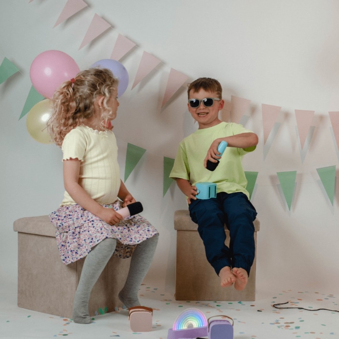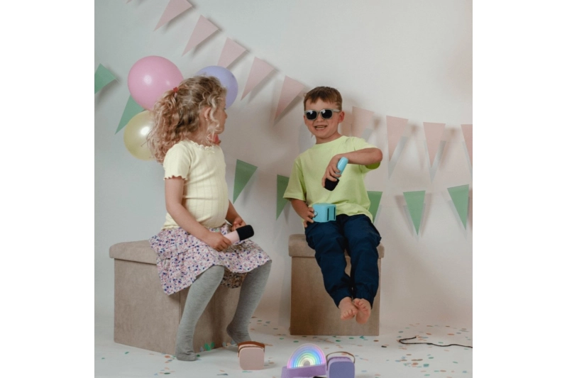 El micrófono inalámbrico hace que tus noches de karaoke sean inolvidables. ¡Un divertido set de karaoke portátil con Bluetooth, ideal para niños a partir de 3 años! Ofrece múltiples funciones musicales en un diseño compacto y moderno.