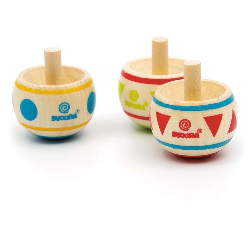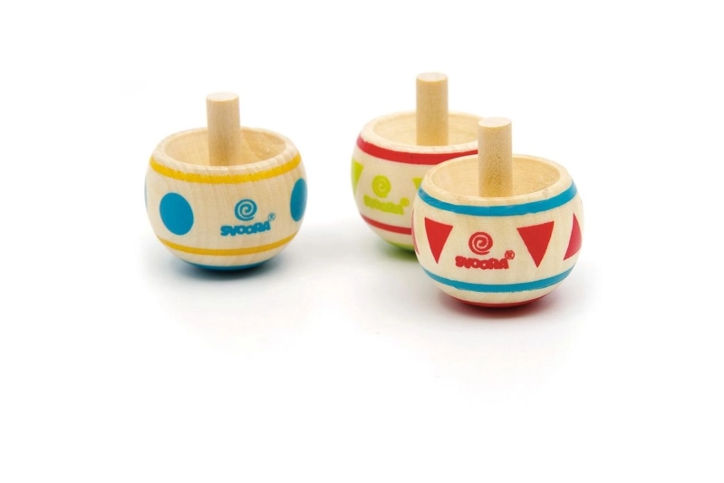 Pequeña peonza de madera con la que disfrutar al mismo tiempo que favorece sus habilidades motoras y el desarrollo mental.