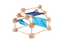 Trígonos es un juego educativo de construcción que incluye piezas de tela, cubos y varillas de madera.