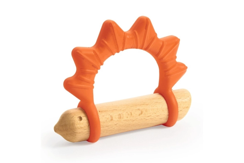 Mordedor de silicona y madera que quiere recordar a un erizo