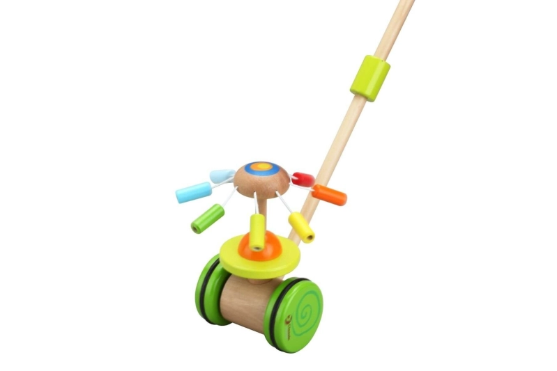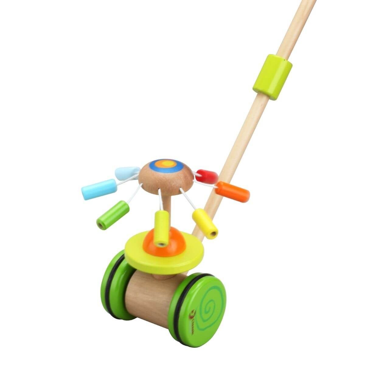 Empuja el palo y verás cómo los pétalos de color arco iris giran y emiten un suave sonido. Perfecto para desarrollar el equilibrio y la motricidad global de tu peque.