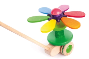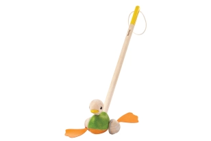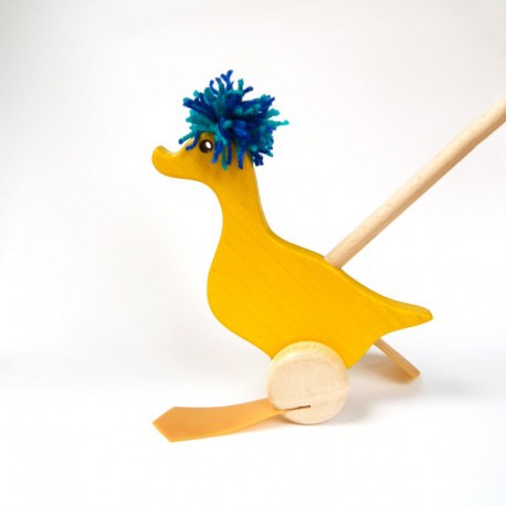 Cuando las criaturas ya han empezado a andar bien solas y tiene estabilidad es cuando se puede empezar a ofrecer el patudo. Empujandolo des del palo sus patas de látex se moveran haciendo un ruido muy gracioso que les encanta.