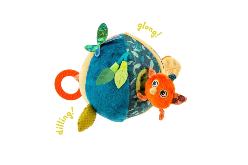 En sus 6 lados encontrará una mariposa, un pajarito colgante que hace “pío pío“, un camaleón bocina, una hoja de la jungla con papel crujiente y una anilla de dentición para calmar el dolor de las encías.